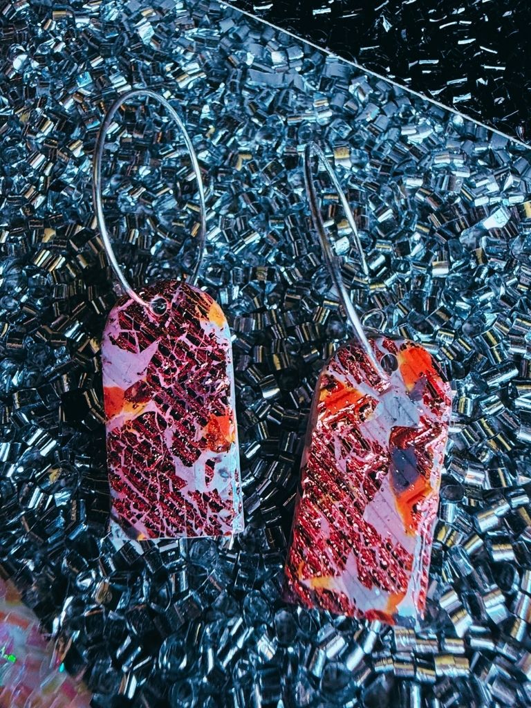 From the Glow Getter collection, these medium polymer clay arches light up the moment with color and texture. Crafted from a vibrant slab of pink foil, periwinkle, orange, white, and charcoal, each arch is richly textured and full of dimension. Hanging from sleek silver hoops, they deliver a bright, modern glow - confident, playful, and effortlessly eye-catching.